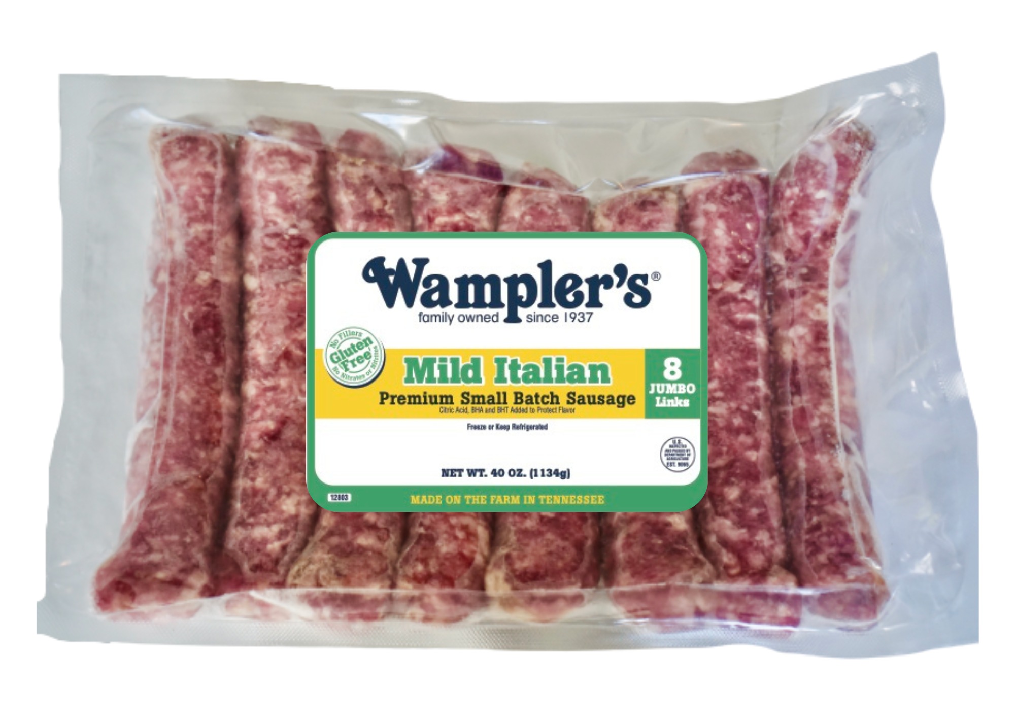 Eight (8), 5oz Mild Italian sausages made from the highest quality cuts of pork in a natural casing. Gluten free with no MSG, nitrates, or nitrites.